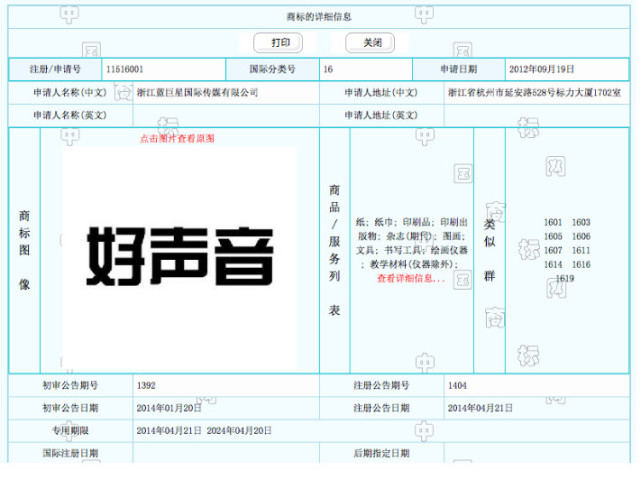 记者注意到,争议商标被申请注册于2012年10月11日,即第一季《中国好声音》结束后不久。众所周知,由于第一季《中国好声音》大获成功,浙江卫视因此突出重围跻身一线卫视,该节目的招商收入亦节节攀升。裁定书也显示了另一事实,即《中国好声音》的被授权方与Talpa公司事前已经约定,包括制作公司和播出平台浙江卫视等机构如需申请商标应当获得Talpa的授权,然而蓝巨星注册商标的行为并未获得荷兰Talpa公司的许可,这也是蓝巨星国际传媒被判定明显违约的重要依据。据悉,蓝巨星国际传媒一共注册申请了多件涉及“好声音”、“The Voice of…及图”的商标,目前已经被明确宣告无效的已经达到26件。