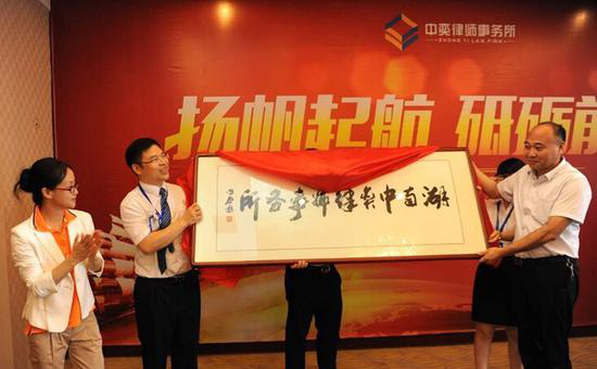 湘潭大学法学院教授、博士生导师王国征与湖南中奕律师事务所主任易永锋一起为律所成立揭牌。